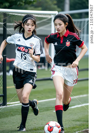 サッカーボールを追う10代の女性選手 AI写真 AI画像 AIグラビア
