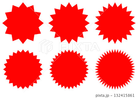 ギザギザの楕円のベクターイラスト素材 30種類セット 背景透過 赤色