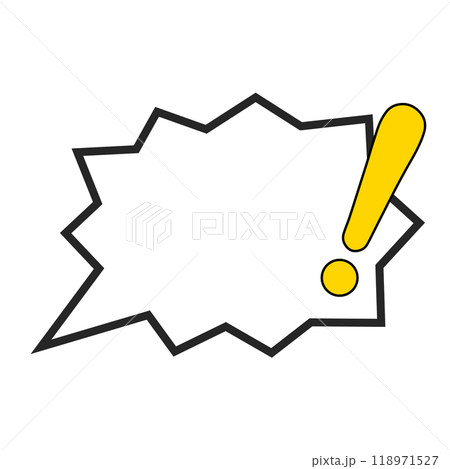 右口で黄色いビックリマーク付きジグザグ型吹き出し