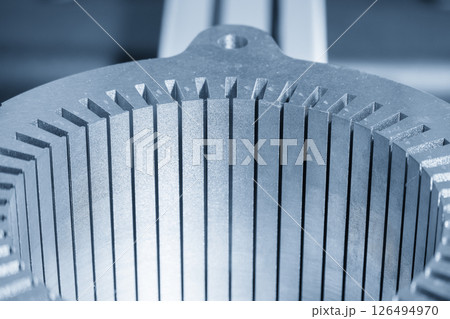 Close up scene the electric vehicle stator parts in the light blue scene.