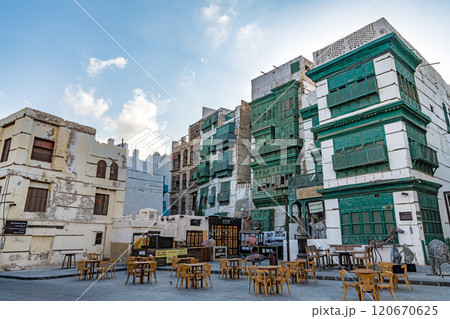 サウジアラビア 夕暮れ時のジッダ歴史地区(アル・バラド)の街並み