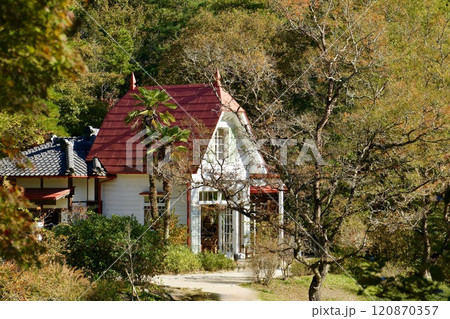 紅葉に包まれたサツキとメイの家
