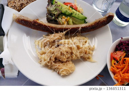 Sausage with cabbage, highway restaurant in Pentling, Germany