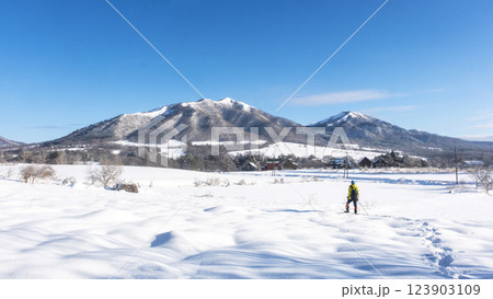 青空を背景にスノーシュートレッキングのイメージ 蒜山高原