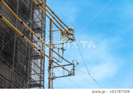 青空と建設現場の電線防護管
