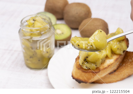 パンに乗せたキウイジャム パンに乗せたキウイのコンフィチュール