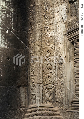 カンボジア、アンコール遺跡、タ・プローム、壁面レリーフ