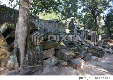 カンボジア、アンコール遺跡、タ・プローム、建物に絡みつくリエップ(榕樹)
