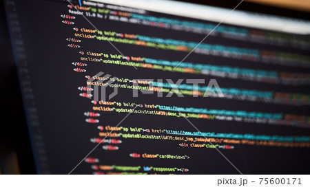 developer software source code on monitor screen. writing script of software developer. program coding. programmer editing code background. Technology background close up shot.