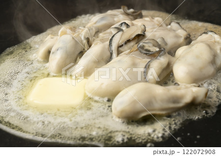 牡蠣のバター焼き 鉄板で牡蠣を焼く