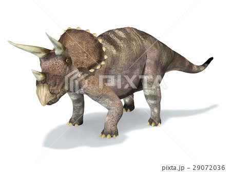 Photorealistic 3 D rendering of a Triceratops.