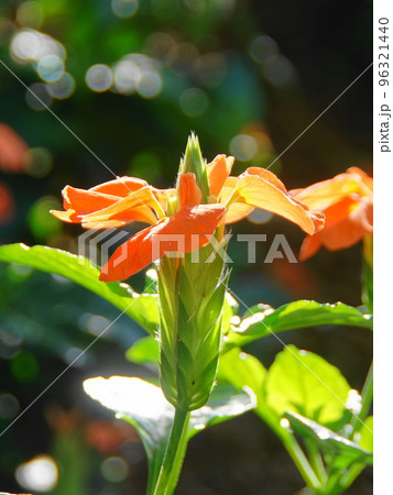 オレンジ色の花 熱帯植物(12月)ジョウゴバナ(クロサンドラ)03V9.16