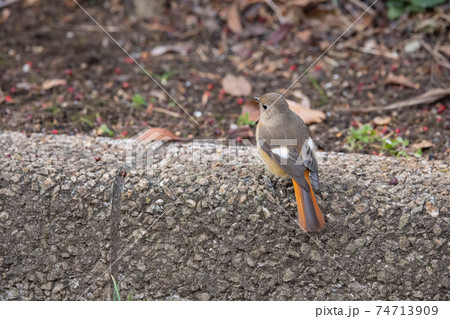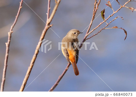 ジョウビタキ 冬の野鳥 メス 川辺にて