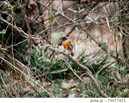 ジョウビタキ 冬鳥 メス 岩場の藪にて