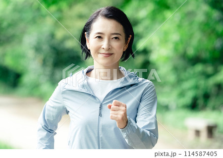ダイエットのため有酸素運動・ランニング・ジョギングして発汗・新陳代謝する女性
