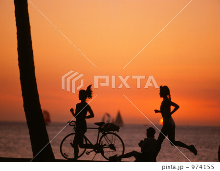 ジョキング 夕焼け 影