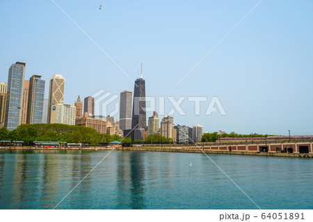 アメリカ合衆国 イリノイ州 シカゴ ミシガン湖とダウンタウン