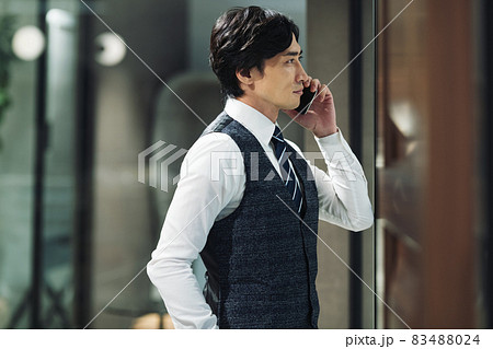 スマホで話すビジネスマン 撮影協力:WEEK芝大門(サンフロンティア不動産)