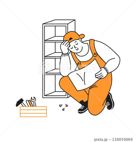 Confused Worker Assembling Furniture