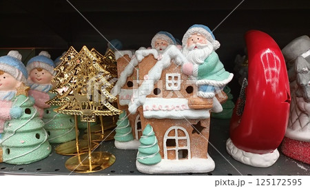 Beautiful and Festive Christmas Decorations Featuring Santa Claus and a Charming Gingerbread House