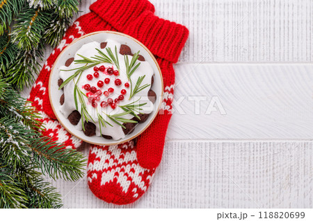 French classic madeleine sponge cake with elements of Christmas motifs