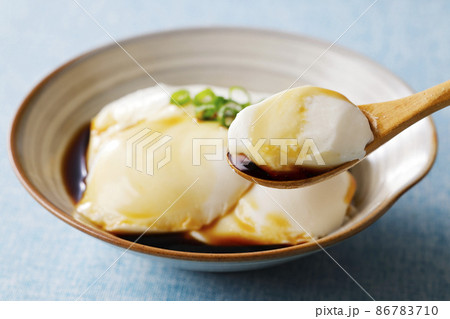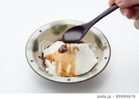 きな粉と甘ダレをかけたジーマーミ豆腐の箸あげ