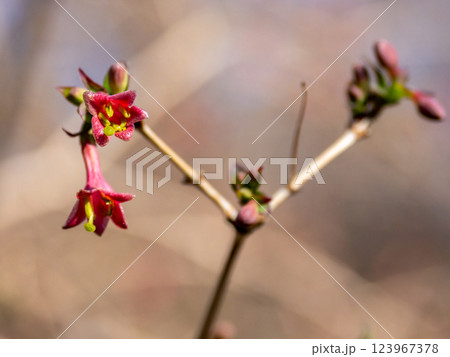 早春に咲き始めたウグイスカグラの花