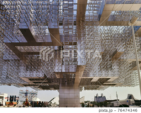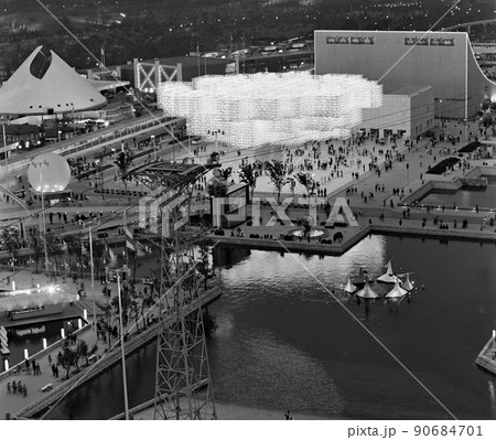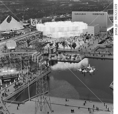 <大阪府>大阪万博で「光の木」と呼ばれたスイス館(中央奥)