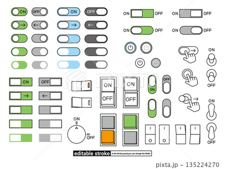 スイッチ・電源・ボタンのアイコンセット(編集可能なストローク)