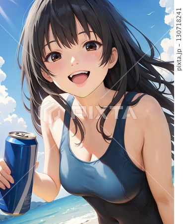 【海水浴】水着少女とドリンク 水分補給 (AI生成画像)