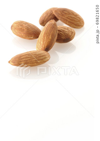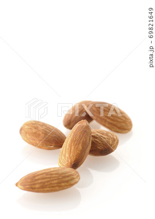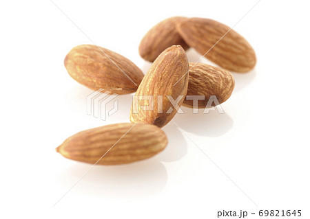 アーモンドとダイアモンドを白背景で撮影。ダイアーモンド。