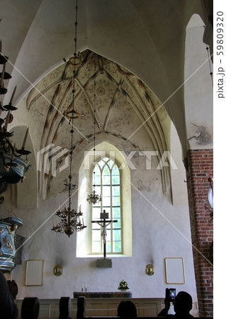 フィンランド ヘルシンキ近郊の古都 ポルヴォー にあるポルヴォー大聖堂の内部から窓側を望む