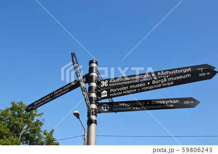フィンランド ヘルシンキ近郊の古都 ポルヴォーの行先案内板
