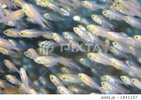 スカシテンジクダイの群れ きらきら光る魚群のイメージ