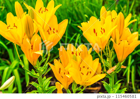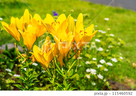 ソラムナード羽田緑地のエントランスに咲く満開のスカシユリ