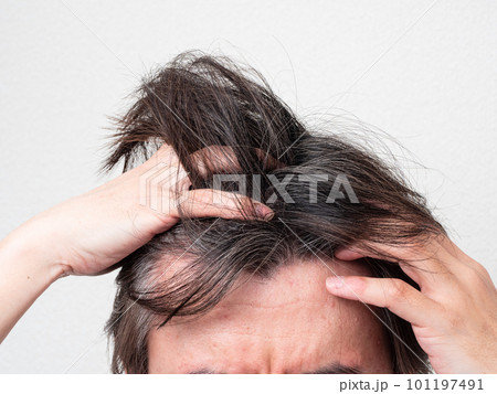 白髪と薄毛を気にする男性の頭