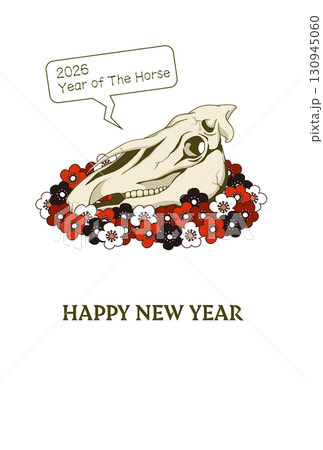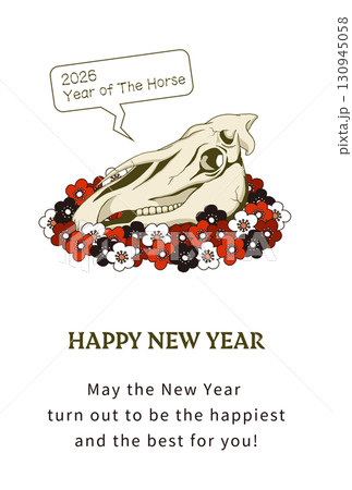 2026年賀状テンプレート「馬スカル」ハッピーニューイヤー 英語添え書き付パターン