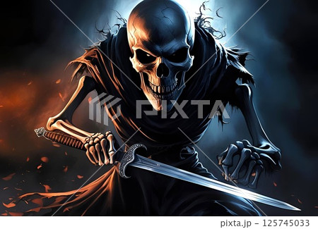剣を持っている恐ろしいガイコツの兵士