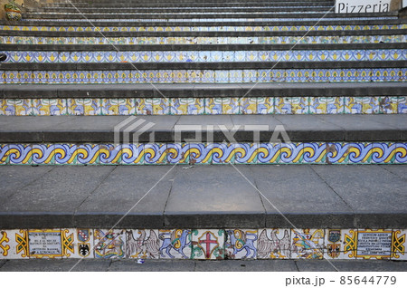 イタリア、シチリア島、カルタジローネ、サンタ・マリア・デル・モンテの大階段「スカーラ」最上部のタイル
