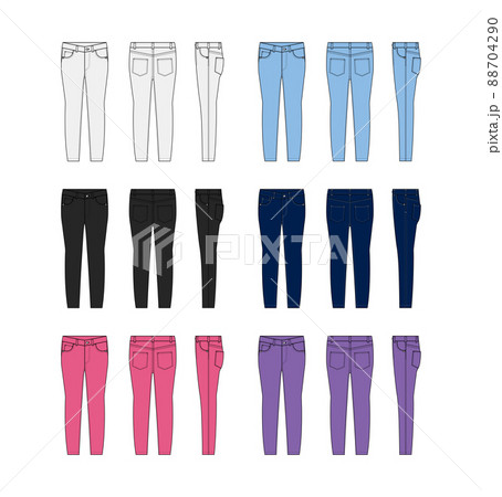 スキニーパンツ・スキニージーンズ ベクターテンプレートイラストセット