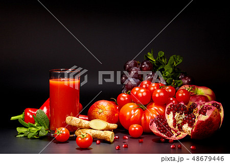 Glasses with fresh organic vegetable and fruit