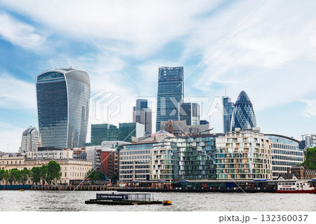 ロンドン テムズ川とシティ・オブ・ロンドンの高層ビル