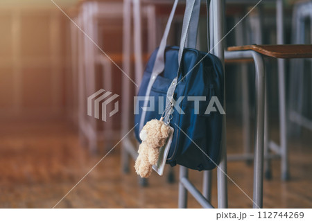 机の上に置かれた,学生カバン