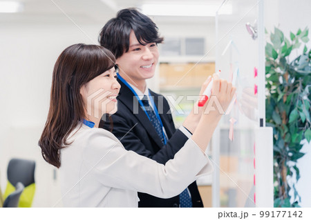 ホワイトボードでアイデアの整理をするビジネスパーソン