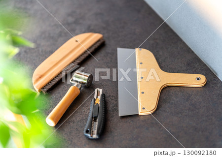 壁紙 クロス張り 内装工事 コーナー部 工具 撫でバケ 押さえローラー カッター 地ベラ