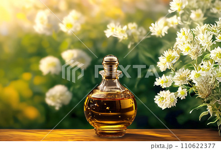 ボタニカルな植物由来オイルのイメージイラスト 「AI生成画像」