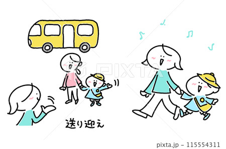 子供の幼稚園の送り迎えをする母親 見送る