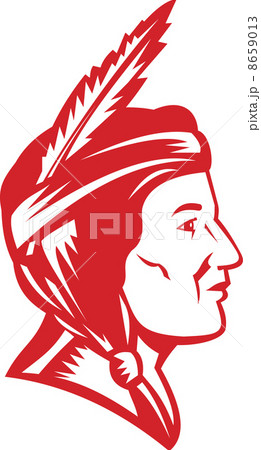 Native American Indian girl, young woman in traditional ethnic clothes and headband with feather