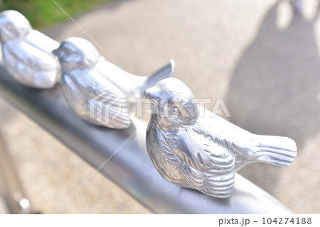 公園のスズメのオブジェ 小鳥の車止め オールドレンズ