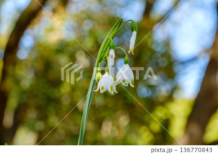 雫をまとったスノーフレーク 春の花 マクロ ぼけ背景